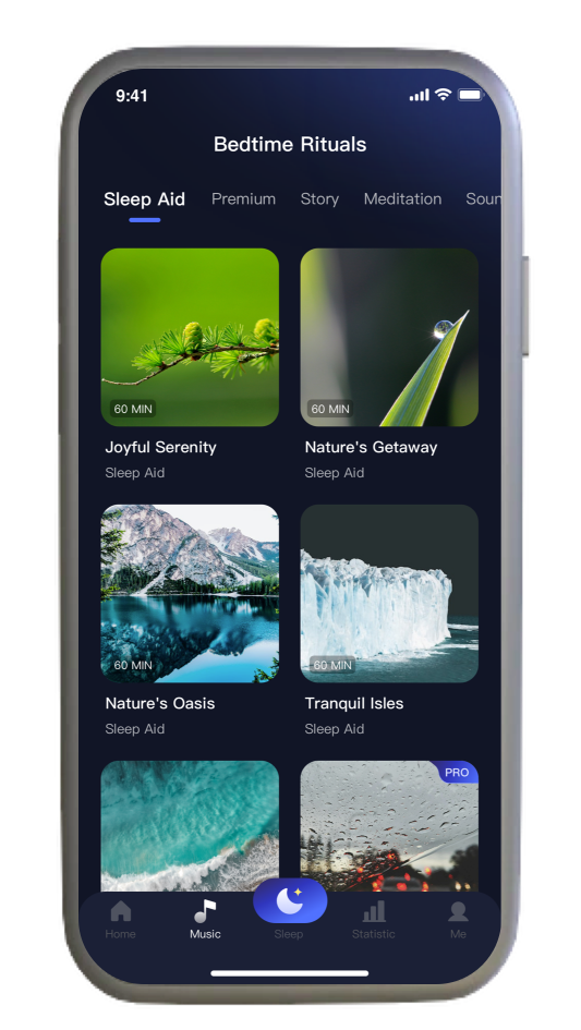 ASMR · binaural beats · serene rainfall · immersive white noise · bedtime stories tailored for adults · mindfulness sessions · and more—expertly curated to ensure a restful night's sleep.